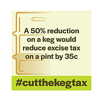 - We are asking for the keg beer rate to be reduced by 50 per cent to provide relief for pubs, clubs, and beer drinkers.